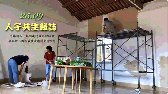 人子在各地的現況:平潭同工一起到廈門古宅驛站參與新三國展演廳裝修/台灣三義人子一家村的有緣人一起討論未來的可能